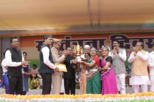 मुख्य अतिथि द्वारा पुरस्कार वितरण – समारोह में मुख्य अतिथि श्री देवांगन के करकमलों द्वारा परेड, सांस्कृतिक कार्यक्रम में उत्कृष्ट प्रदर्शन करने वाले दलों को शील्ड और प्रशस्ति पत्र प्रदान कर सम्मानित किया गया।