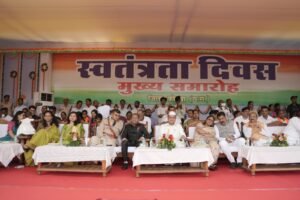 कोरबा में स्वतंत्रता दिवस मुख्य समारोह में मुख्य अतिथि मंत्री श्री लखनलाल देवांगन ने हजारों नागरिकों की उपस्थिति में प्रातः 9 बजे ध्वजारोहण किया और परेड की सलामी ली। इस अवसर पर राष्ट्रगान प्रस्तुत किया गया। सुरक्षा बलों द्वारा हर्ष फायर किया गया और छत्तीसगढ़ सशस्त्र बल, सीआइ्र्रएसएफ, जिला पुलिस बल, सुरक्षा बल,नगर सेना, वन रक्षक, स्काउट गाइड सीनियर-जूनियर डिवीजनों द्वारा आकर्षक मार्च पास्ट प्रस्तुत किया गया। परेड कमांडरों द्वारा परेड रिपोर्ट प्रस्तुत की गई। मुख्य अतिथि ने परेड का निरीक्षण किया। इस दौरान उनके साथ कलेक्टर श्री अजीत वसंत एवं पुलिस अधीक्षक श्री सिद्धार्थ तिवारी उपस्थित थे। उन्होंने अनेकता में एकता के प्रतीक गुब्बारे आकाश में छोड़े। इसके बाद विभिन्न शालाओं के छात्र-छात्राओं द्वारा आकर्षक, मनमोहक देशभक्ति गीतों पर आधारित सांस्कृतिक कार्यक्रमों की प्रस्तुति दी गई। जिसका दर्शकों द्वारा करतल ध्वनि से स्वागत किया गया ओर कार्यक्रमों का आनंद लिया। समारोह में अपने कर्तव्य निर्वहन के दौरान शहीद होने वाले जवानों के परिजनों को सम्मानित किया गया।