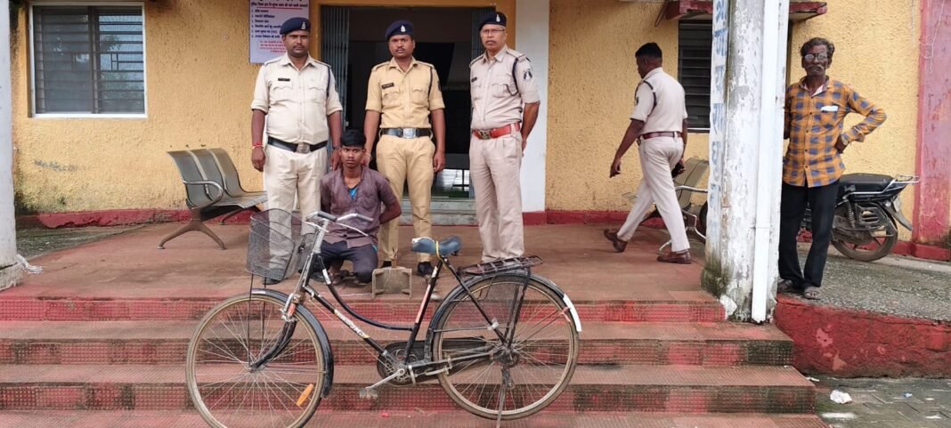 जांजगीर चांपा आरोपी राजकुमार उर्फ राजेन्द्र साहू उम्र 19 वर्ष साकिन किरारी थाना अकतलरा जिला जांजगीर चांपा आरोपी से बरामद एक लेडिस सायकल, ट्रेक्टर का हीच व नागर का एडजेस्टर, जुमला कीमती 6500/ रुपया* मामले का विवरण इस प्रकार है कि प्रार्थी चन्द्रिका प्रसाद कश्यप निवासी वार्ड नंबर 07 चोरभट्ठी किरारी थाना अकलतरा द्वारा रिपोर्ट दर्ज कराया की दिनांक 20.08.2024 को रात्रि में किसी अज्ञात व्यक्ति द्वारा गेट के ताला को तोड़ कर घर अंदर घुसकर लेडिस सायकल, ट्रेक्टर का हीच एंव नागर एडजेस्टर जुमला किमती 6500/ रूपये को चोरी कर ले गया है की रिपोर्ट पर अपराध क्रमांक 393/2024 धारा 303(a), 331(4) BNS पंजीबद्ध कर विवेचना मे लिया गया है ।