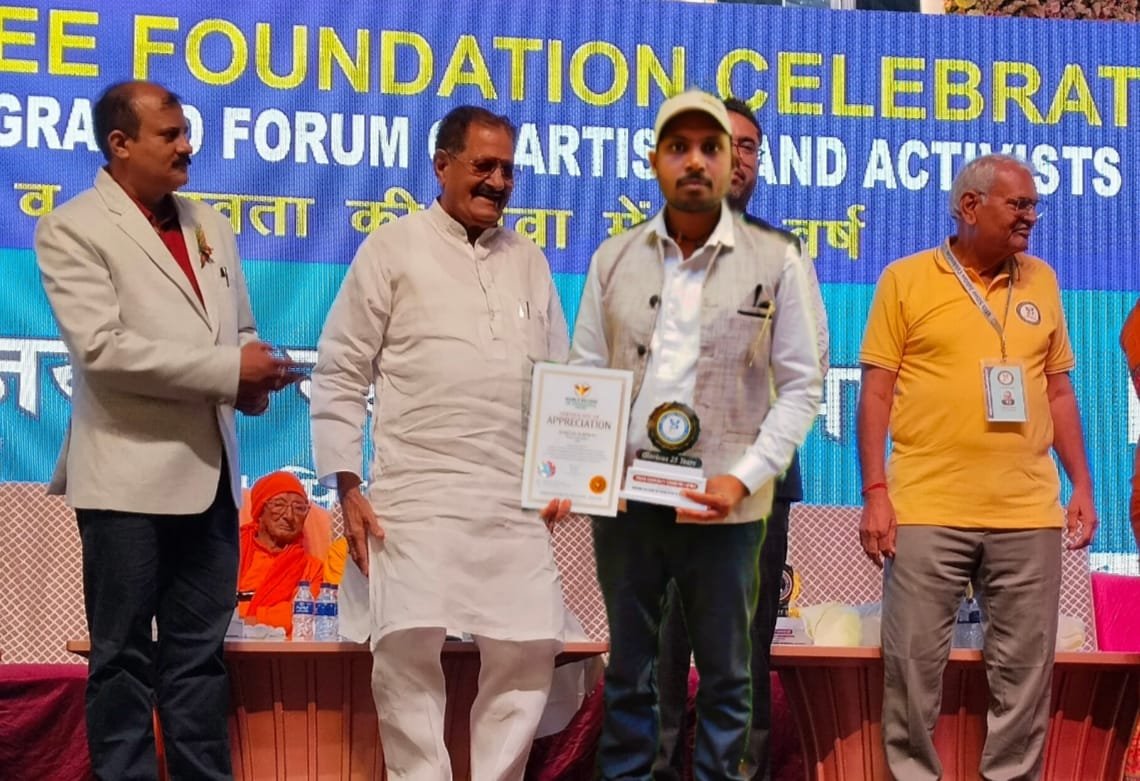 AS NEWS 24 नई दिल्ली (भारत मंडपम) मे नेशनल इंटीग्रेटेड फोरम ऑफ आर्टिस्ट्स एंड एक्टिविस्ट्स 21 से 24 सितंबर 2025 तक अपने सिल्वर जुबली उत्सव का आयोजन किया गया निफा फाउंडेशन के राष्ट्रीय संस्थापक प्रतिपाल सिंह (पन्नू) जी और राष्ट्रीय अध्यक्ष शेट्टी व प्रियंका बिसा के नेतृत्व में यह आयोजन भारत देश भर के 700 जिले से आये देश के अनेक सस्थाएं जो जनहित मे अपनी सेवा दे रहे है ऐसे संस्था के प्रमुख को सम्मानित करने के लिए आमंत्रित किया गया सांस्कृतिक कार्यक्रम से नेशनल आवाडियो का स्वागत किया गया जिसमें निःस्वार्थ सेवा संस्थान के अध्यक्ष राकेश श्रीवास जी को 21 सितंबर नई दिल्ली के भारत मंडपम में उद्घाटन समारोह और पुरस्कार समारोह मे राकेश श्रीवास को नेशनल अवार्ड व अंतराष्ट्रीय प्रमाणपत्र देकर सम्मानित किया गया* यह सम्मान कलाकारों और सामाजिक कार्यकर्ताओं के राष्ट्रीय एकीकृत मंच (निफ़ा) की रजत जयंती (25वीं वर्षगांठ) के उपलक्ष्य में प्रदान किया गया है. *चार देशों से आए प्रतिनिधि जापान, मॉरीशस, भारत,इंग्लैंड देश के प्रतिनिधि इस कार्यक्रम की शोभा बढ़ाया* और *मॉरीशस देश के राष्ट्रपति जी की कुछ कारण वश इस कार्यक्रम में नहीं आ पाए जिसके चलते उनके प्रतिनिधी वहां उपस्थित रहे l इंग्लैंड के राष्ट्रपति हेनरी आर.ने भारत के सभी समाज सेवियों को शुभकामना प्रेषित करते हुवे अपने देश के प्रतिनिधी के द्वारा वर्ल्ड रिकॉर्ड ऑफ एक्सीलेंस प्रशस्ति पत्र प्रदान किया* l जो उत्कृष्ट कार्य के लिए दिया जाता है साथ ही निफा फाउंडेशन के द्वारा यंग कम्यूनिटी चैम्पियन अवार्ड से निःस्वार्थ सेवा संस्थान के अध्यक्ष राकेश श्रीवास को नवाजा गया lराकेश के लिए, नेशनल अवॉर्ड सिर्फ एक व्यक्तिगत उपलब्धि नहीं है इसके पीछे बहुत बड़ी कहानी है जो एक ग़रीब परिवार में जन्म लिया और बचपन से आर्मी में जाने की सोच रखता था लेकिन राकेश के किस्मत में आर्मी की सेवा नहीं लिखा था इसलिए राकेश ने जनसेवा को ही देश सेवा मान लिया जैसे थैलेसीमिया पेशेंट सिकलिंग पेशेंट गर्भवती महिला एक्सीडेंट सभी जरूरतमंद मरीजो को निःशुल्क ब्लड उपलब्ध करवाना और स्वयं राकेश अभी तक 29 बार रक्तदान एवं मृत्यु के पश्चात देह दान कर चुके हैं एवं बीमार एक्सीडेंट गौ सेवा निःस्वार्थ सेवा संस्थान सदस्यों के साथ मिलकर करते हैं समाज सेवा के प्रति समर्पण ने राकेश श्रीवास,, समाज में एक बेहतर बदलाव और अपने आप को उस स्तर तक ले जाए जिससे समाज में एक बेहतर बहु उद्देशीय सेवा किया जा सके ये सोच के साथ राकेश श्रीवास निरन्तर रक्तदान, गौसेवा, घायल पशु की प्राथमिक उपचार एवं देखरेख,सेवा, और संस्थान के सदस्यों के साथ सिकलसेल बच्चों को गोद लेकर उन्हें खून उपलब्ध कराना, गरीब मरीजों को निःशुल्क उपचार करान